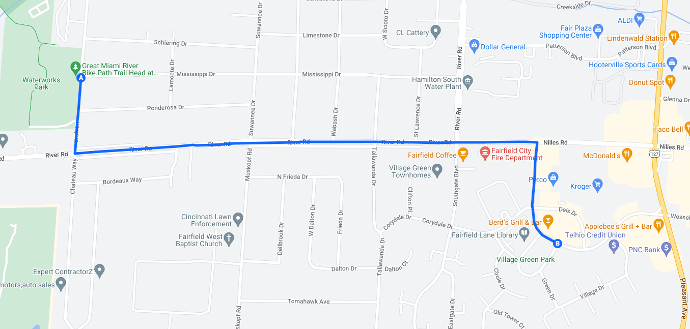 - Turn left (East) onto River Rd./Nilles Rd.