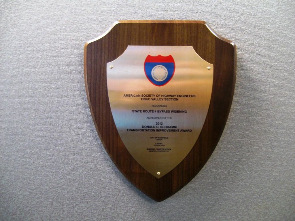 The City of Fairfield, LJB Inc., and Sunesis Construction received the 2012 Donald C. Schramm Award from the American Society of Highway Engineers - Triko Valley Section for the category of construction projects over $3,000,000.